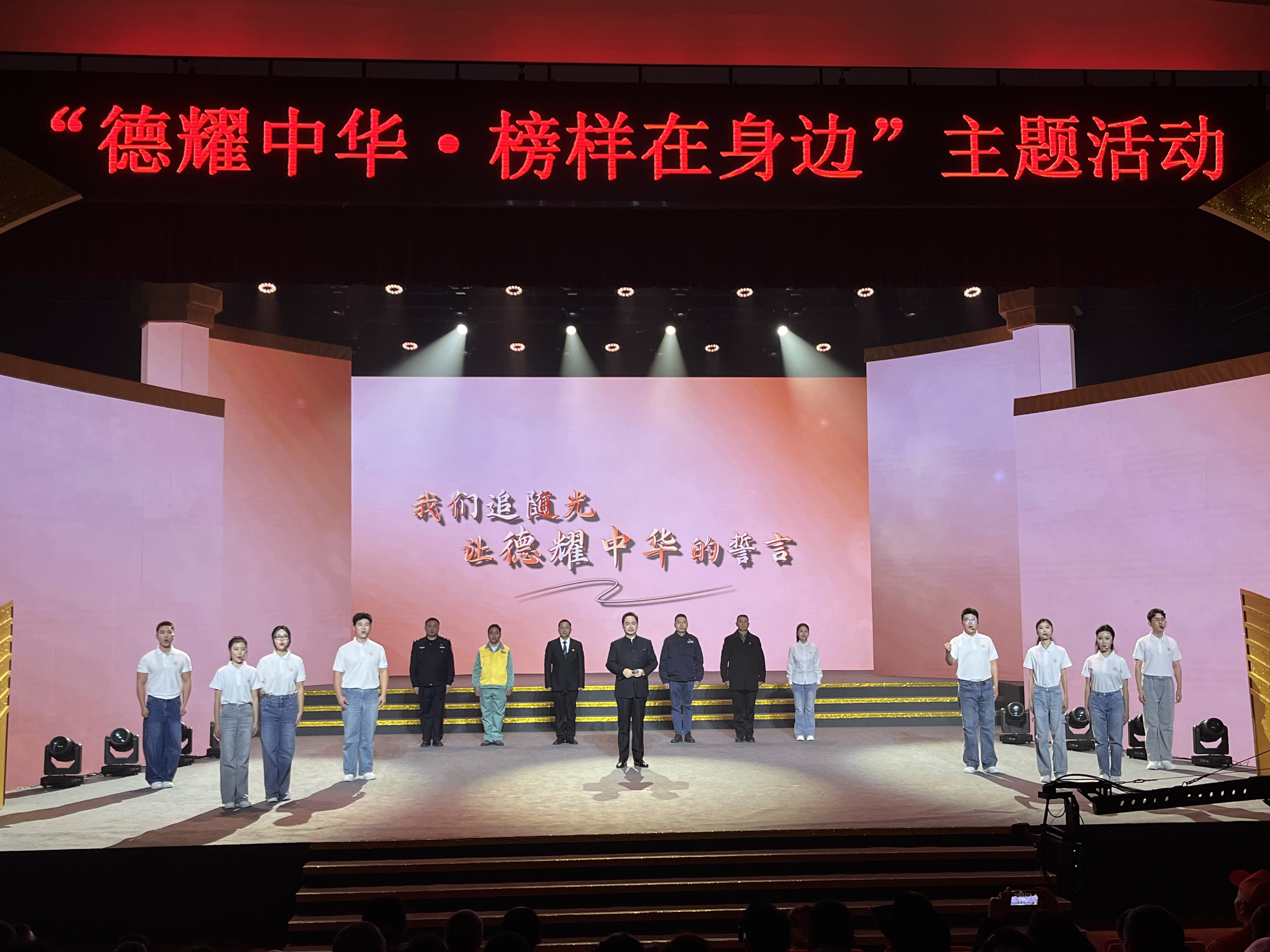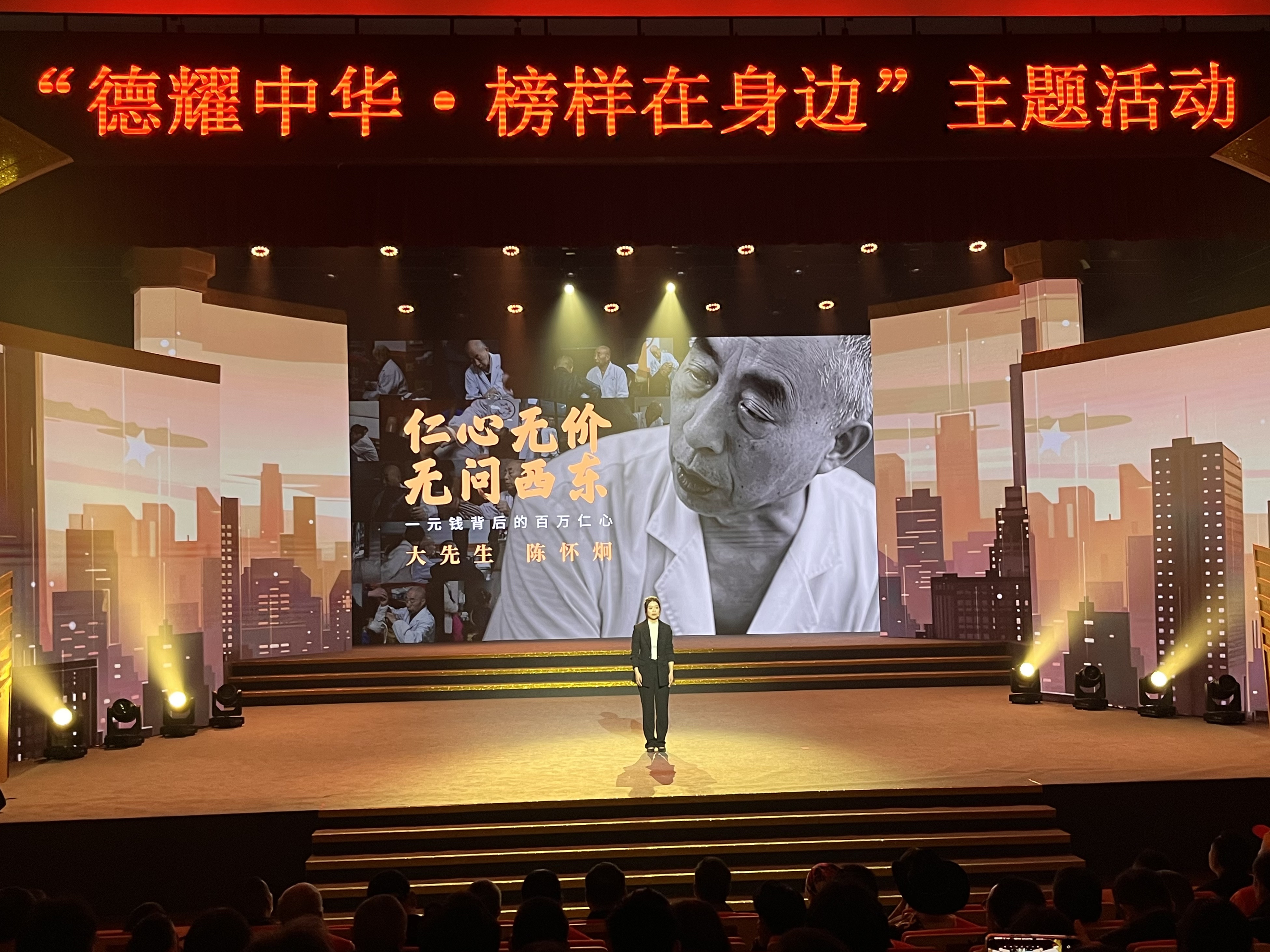 道德模范是全社会的价值标杆,他们的事迹温暖人心、感动中国。开展“德耀中华·榜样在身边”主题活动,通过与群众面对面交流等,传播道德模范的嘉言懿行,解读他们的精神世界,传递他们的榜样力量。活动现场,情景小品《一动一静,守护黄山之巅》生动讲述黄山风景区普通工人李培生、胡晓春用心用情守护美丽黄山的故事,让观众深受打动。新疆维吾尔自治区乌恰县吉根乡护边员布茹玛汗·毛勒朵60年如一日在海拔5000米的高山之上,踩出20多万公里的巡边足迹,沿着边境线刻下10多万块“中国石”。纪实影像《帕米尔高原上的“中国石”》,充分展现了她的担当坚守。四川省天全县中医院原院长陈怀炯,坚持1元挂号、3元膏药的诊疗费用,并将祖传诊所、独门秘方无偿捐给国家。《仁心无价·无问西东》以记者的视角讲述他的医者仁心,获得观众们点赞致敬。“这封信,是穿越时空的文明接力棒,是连通昨天和明天的精神誓言”,道德模范与青年学生一起朗诵《写给未来的信》,表达书写更多道德故事的心声,让台上台下产生强烈共鸣。