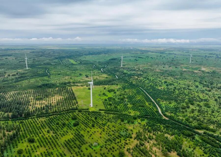 2024年8月3日,在内蒙古通辽科尔沁左翼后旗,科尔沁沙地“双百万亩”综合治理工程努古斯台项目区内绿意盎然。