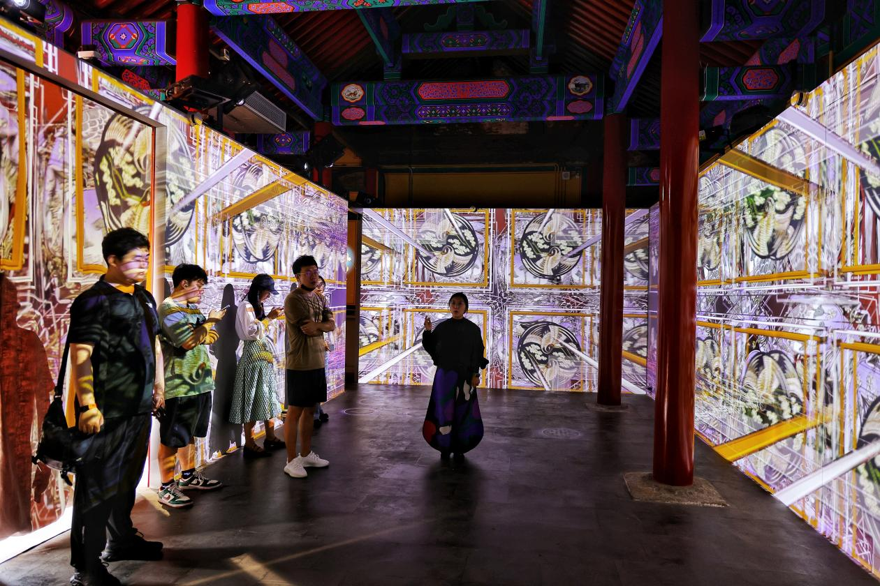 地处北京中轴线北端鼓楼北侧的“观中”博物馆,占地面积约5100平方米,通过文物活化利用,探索并孵化了首家北京中轴线主题邮局、中轴线数字展厅、观书殿、国学馆等多种业态。目前已经举办古建音乐季、读者签售会等文化活动200余场,深受群众喜爱。其中,“山门来吧·数字艺术馆”利用现代科技手段,为古代文物建筑打造数字化展示平台,让观众沉浸式体验数字艺术与传统文化的融合,吸引众多游客前来“打卡”。