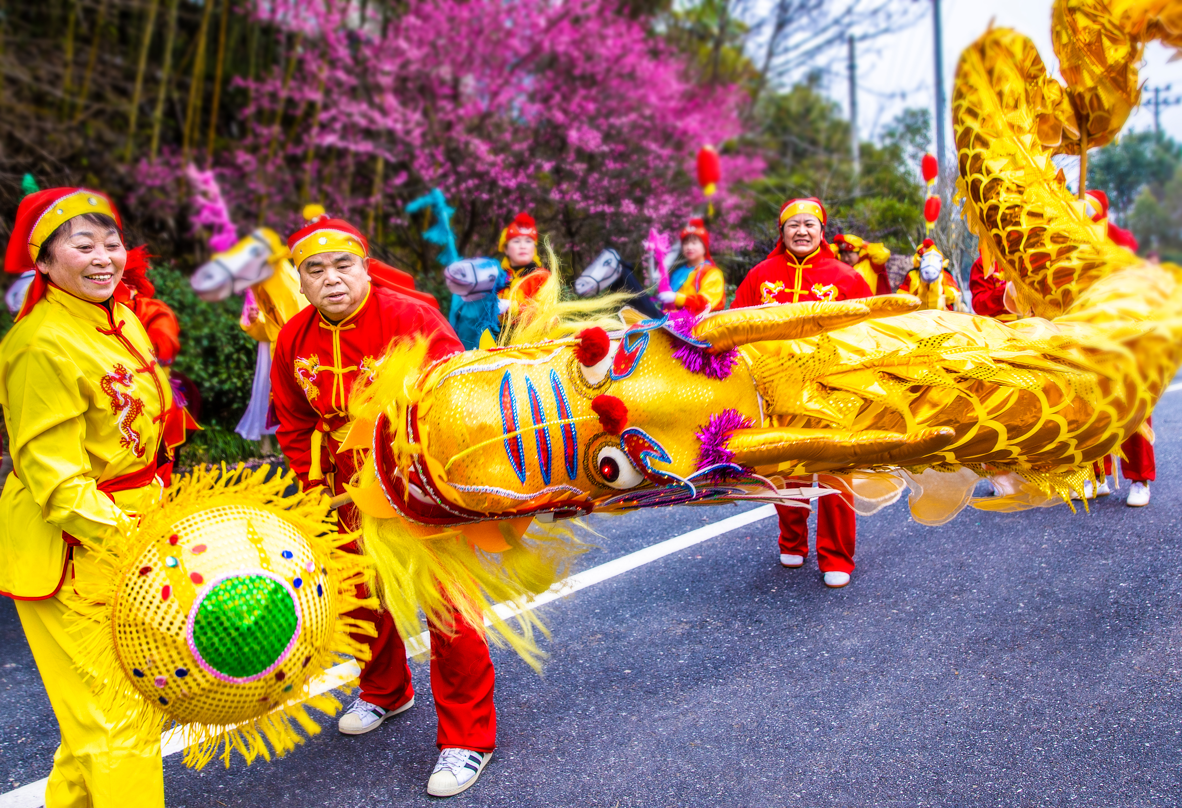 月亮桥村举办舞龙灯活动。