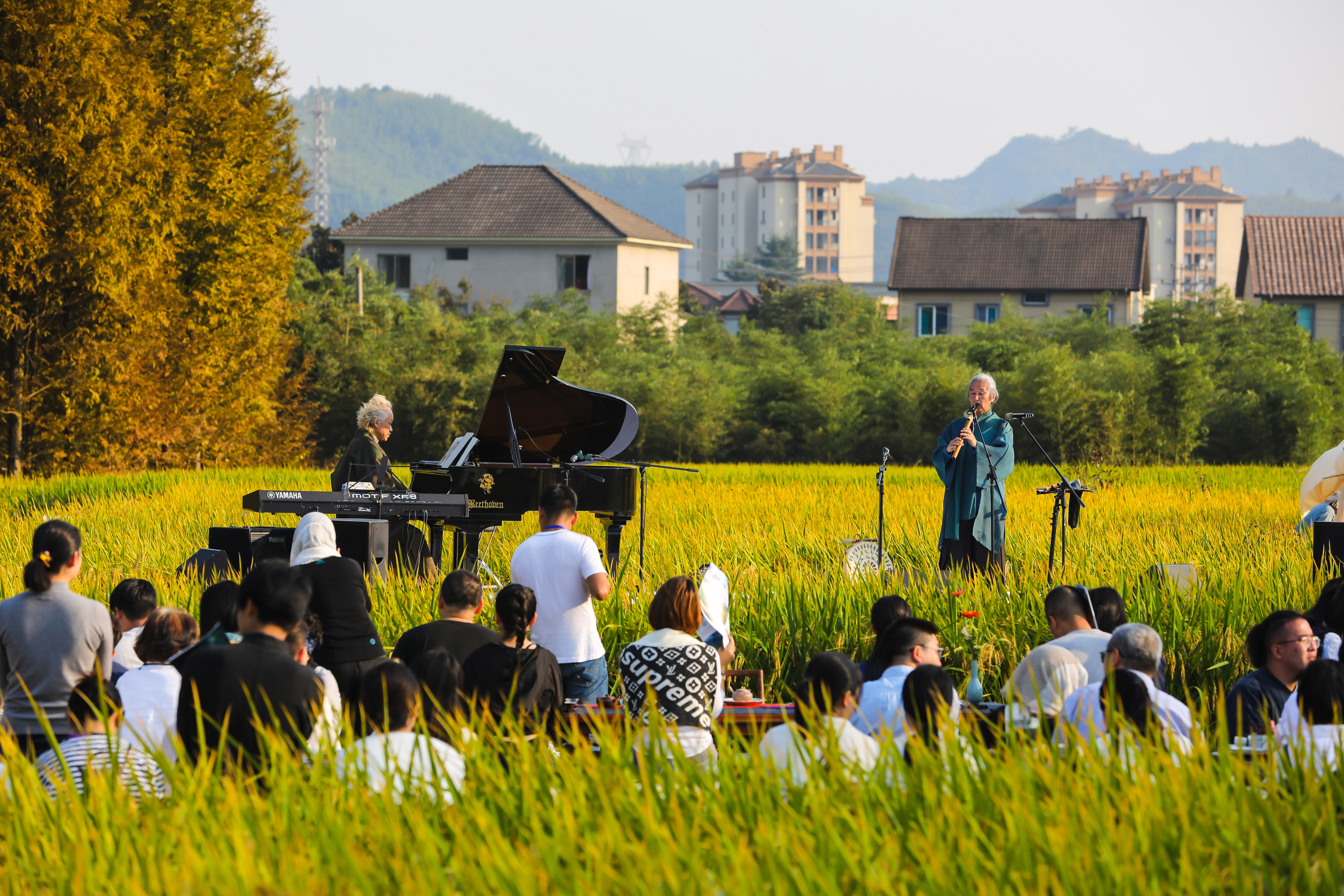 月亮桥村举办“稻田艺术季”,吸引各地游客打卡旅游。