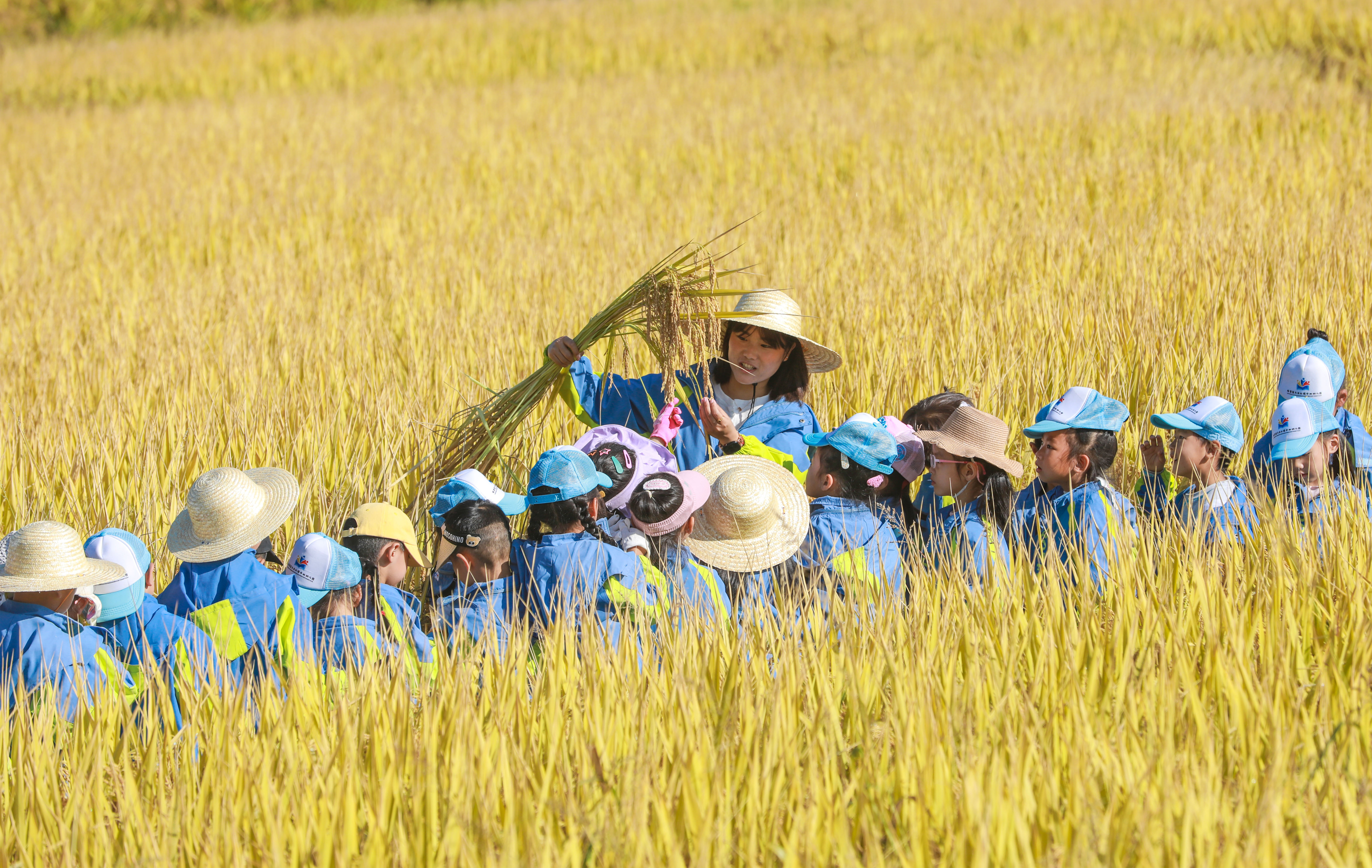 月亮桥村新时代文明实践站联合幼儿园开展“走进田园 体验丰收”主题活动。