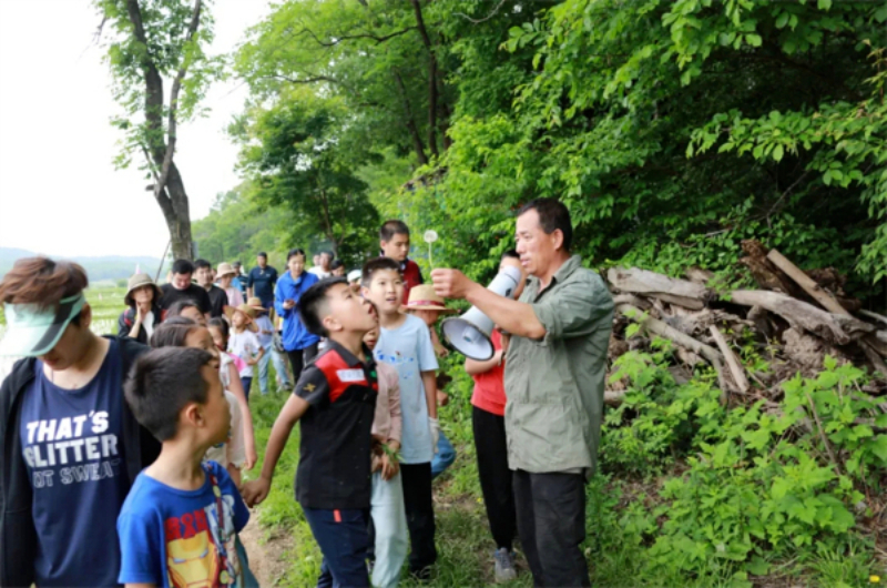 李荣富带领学生在野外开展环保教学活动。吉林省文明办供图