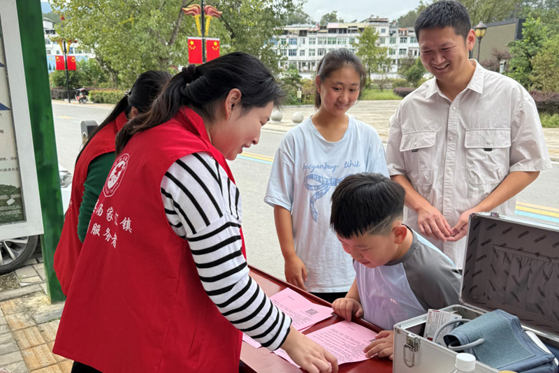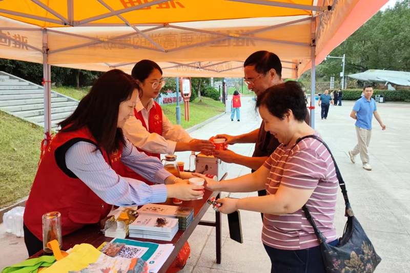梅山镇新时代文明实践志愿者为游客提供咨询、讲解、茶水、充电等一站式服务,让旅途无忧。