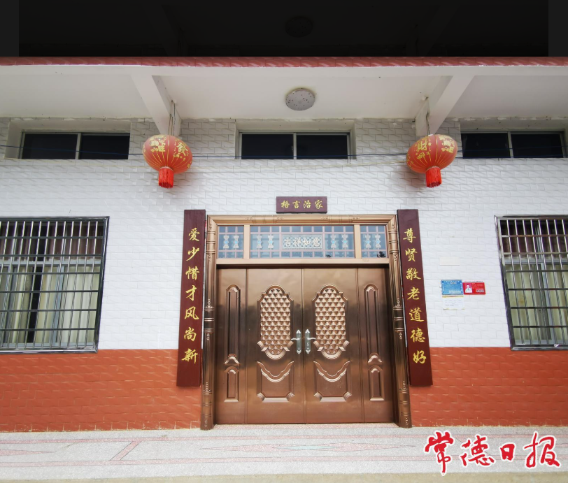 村民门口挂着格言治家牌匾。