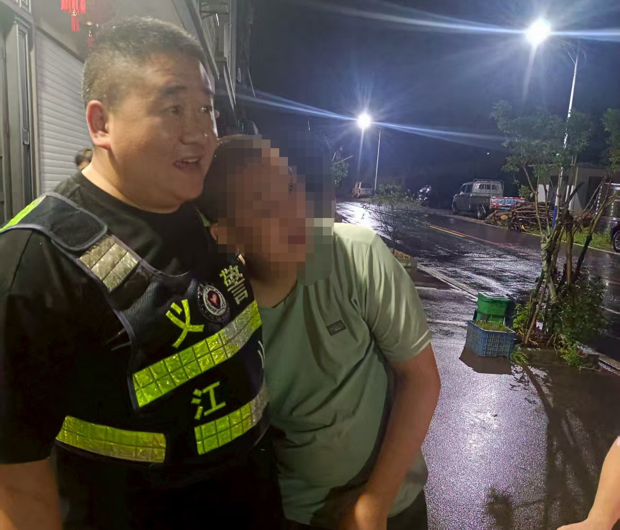 “当时远远看到他站在雨里,衣服也淋湿了,眼神慌乱,我以为出了事,就赶紧跑过去询问情况。”邹樟森回忆起当时场景仍记忆犹新,“一开始他很抗拒,话也说不出来,我只能先安抚他的情绪。”后来,通过耐心沟通和多方打听,邹樟森确认了小杨的家庭信息,终于联系上了他的家人。