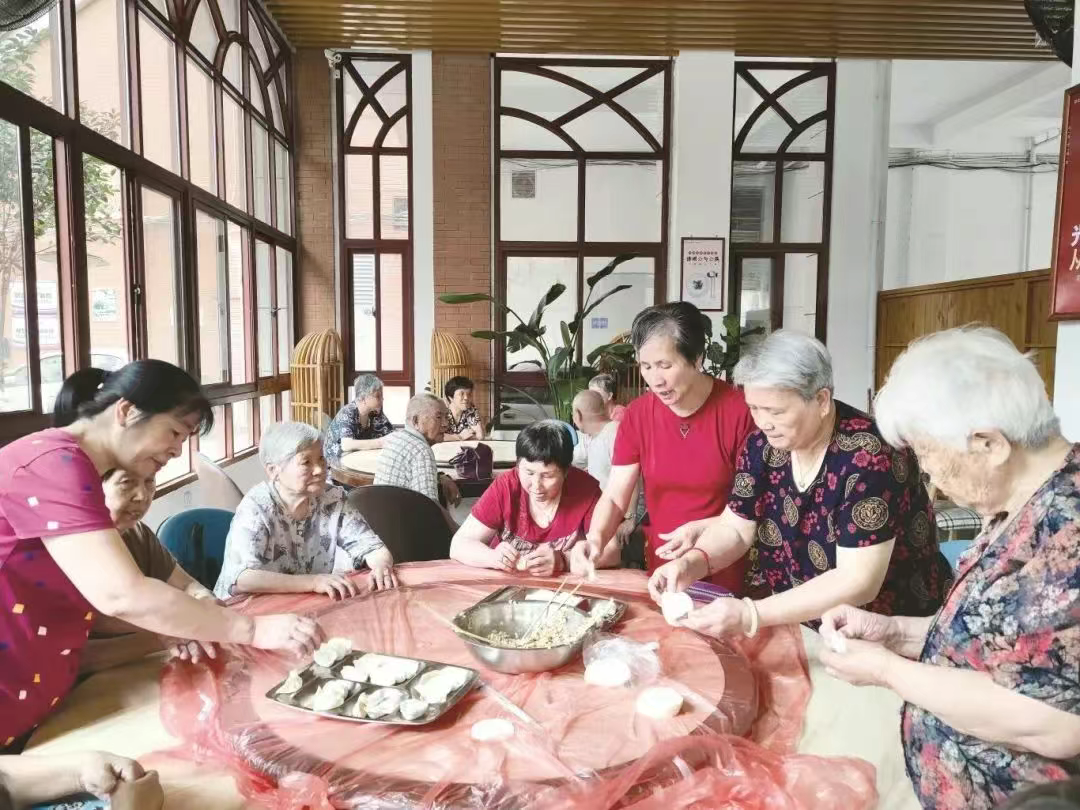 在福鼎市的长者食堂,大家热情地包着饺子。 宁德文明网供图