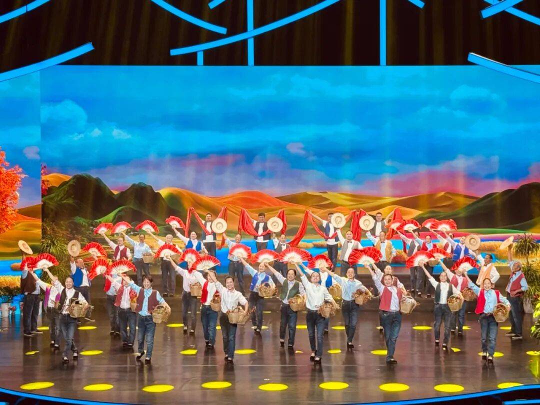 宁夏选送合唱情景表演《我们的故事 我们的歌》。乡音绘新风,金曲叙变迁!宁夏中卫中宁县大战场农民合唱团用质朴的歌声,演绎移风易俗里的乡村故事,唱响文明乡风的新活乐章。王晓宁 摄