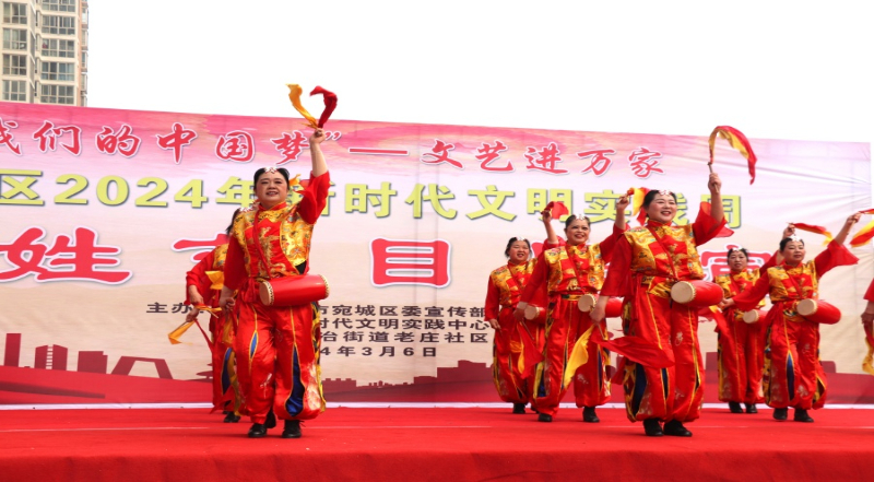 南阳市宛城区新时代文明实践中心开展文艺进万家文明实践活动。南阳市文明办 供图