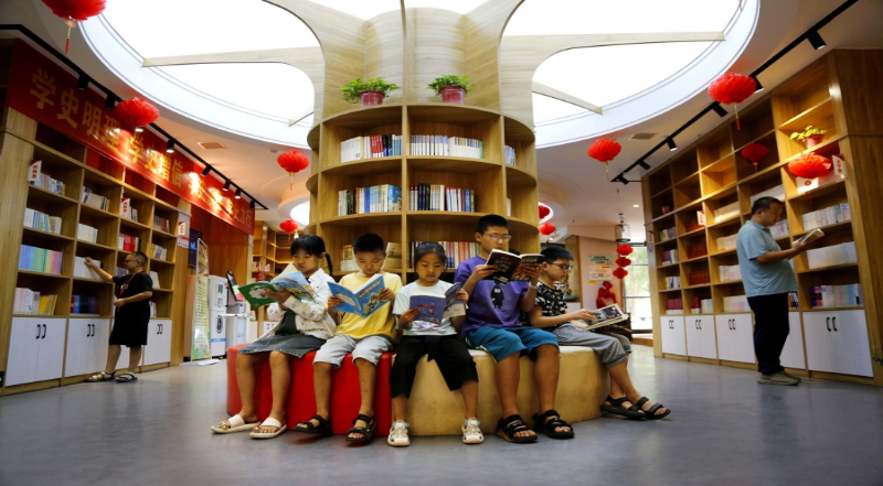 暑假期间,孩子们在南阳市诸葛书屋内阅读。南阳市文明办 供图