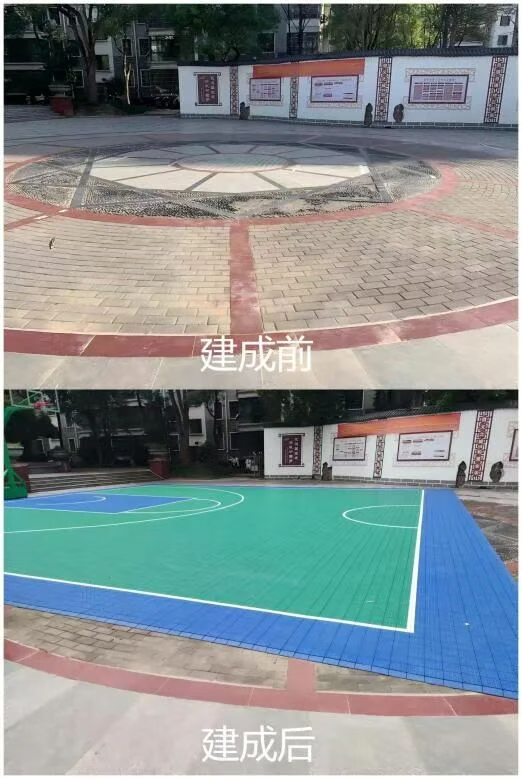 东方前城社区南区广场篮球场建成前后对比