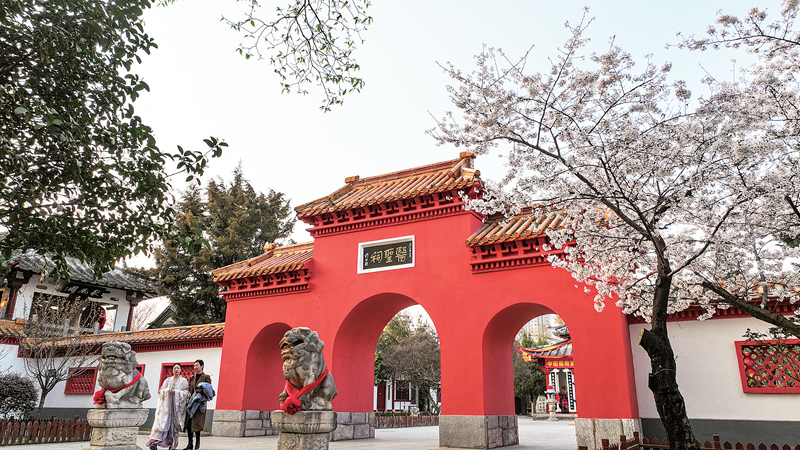 医圣祠里樱花开。南阳日报记者 崔培林 摄