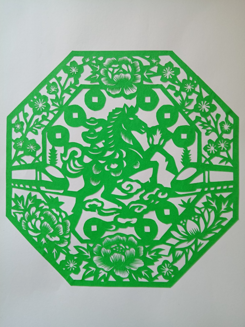 剪纸《铁骨长青,马到成功》。中国文明网网友@金亮 摄